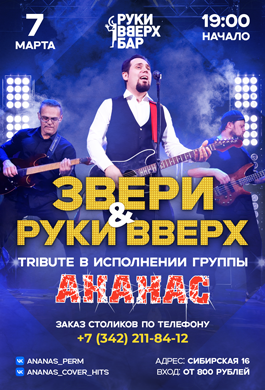 Две самые одиозные фигуры Российского шоу бизнеса, как группа ЗВЕРИ и группа РУКИ ВВЕРХ сойдутся на одном танцполе в исполнении группы АНАНАС!