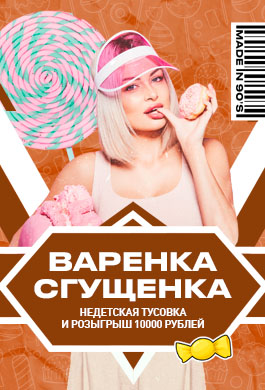 Сделаем увлекательное путешествие в мир легендарных сладостей, вкусных коктейлей, стилевых треков 90х-00х от дискжокеев и улетных танцев, разыграем 2 кг варенки, 4 набора сладостей и 10000 рублей!